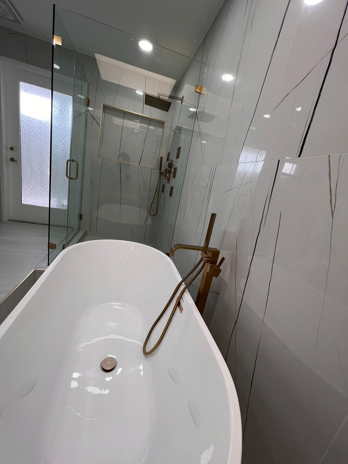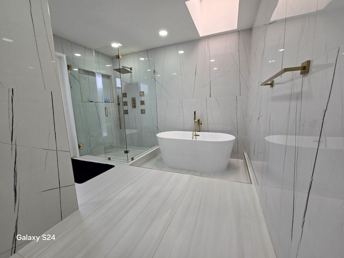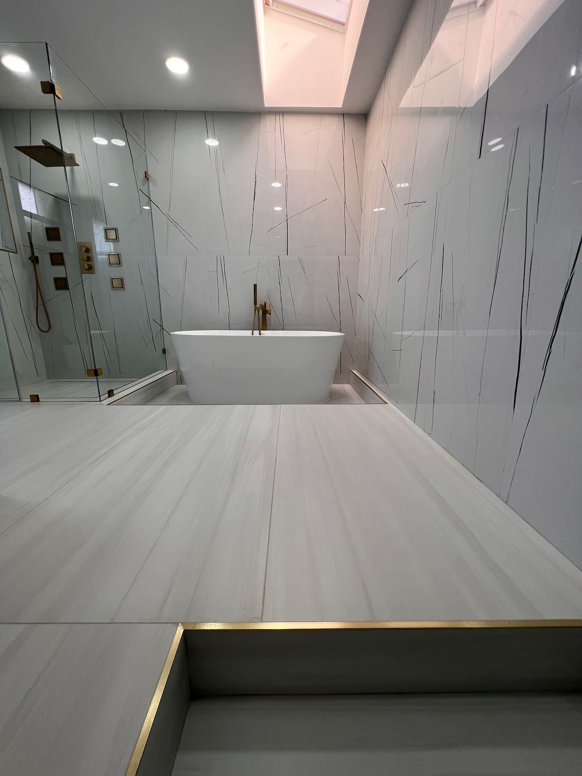 Bedroom 4: Master suite with a king-size bed, private en-suite bathroom featuring a freestanding tub, a spacious walk-in closet, and a makeup station.