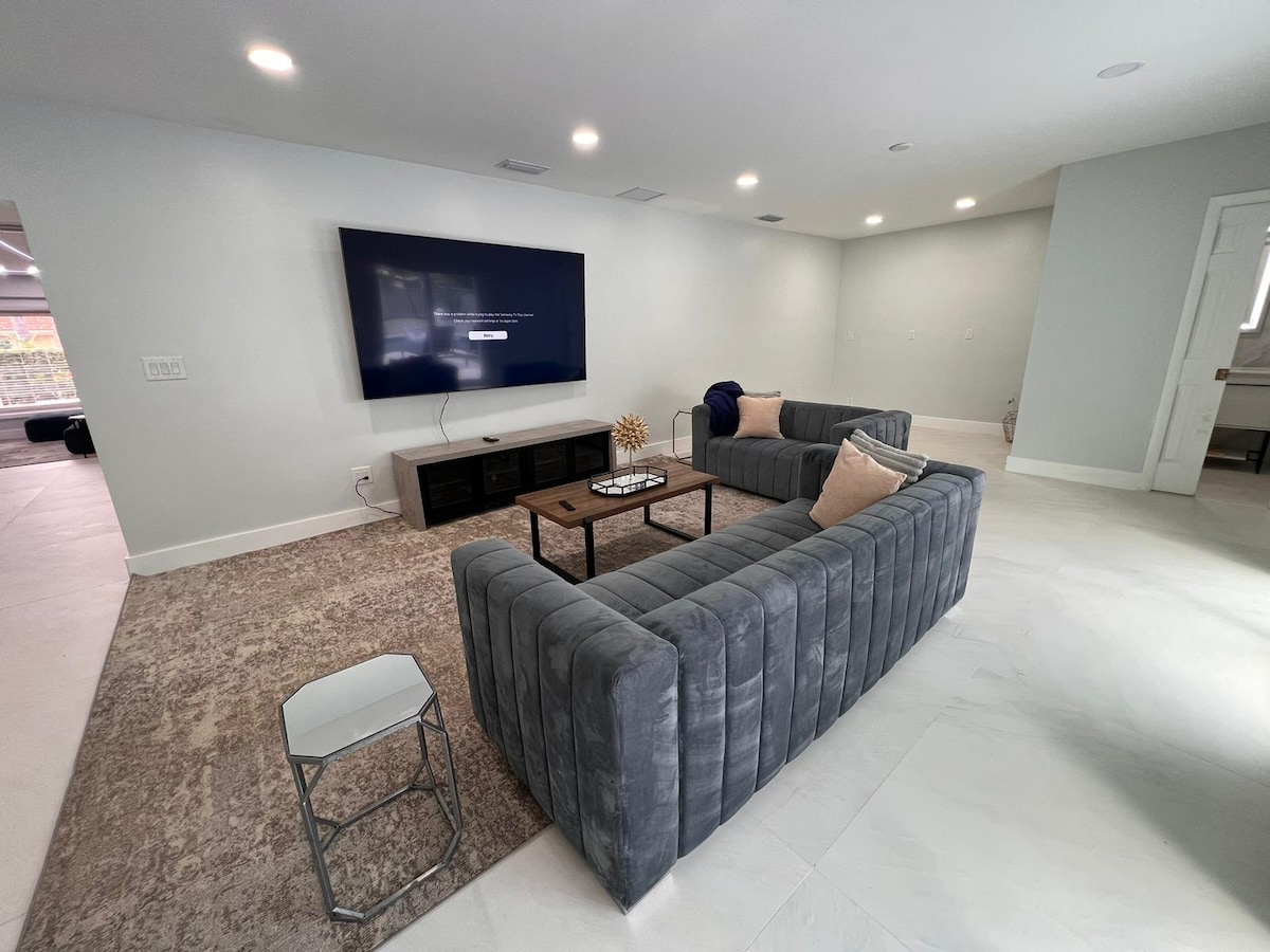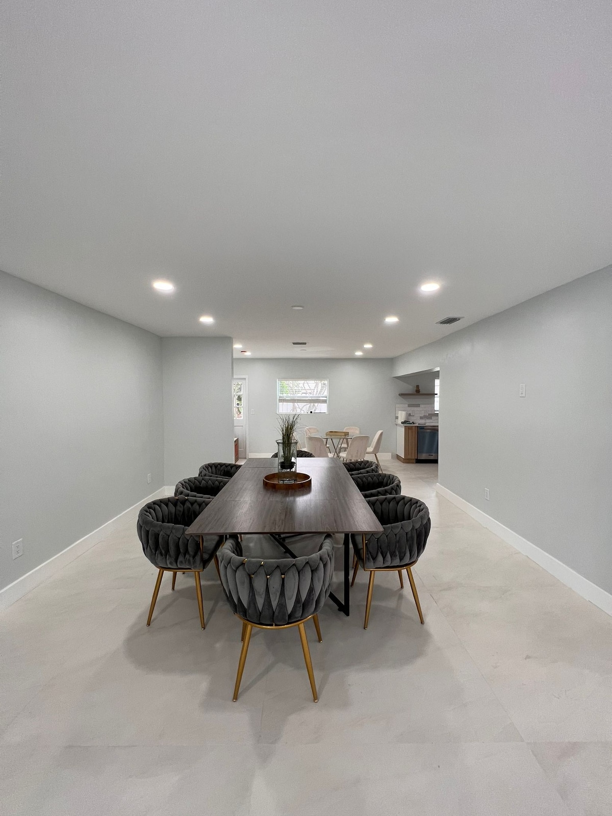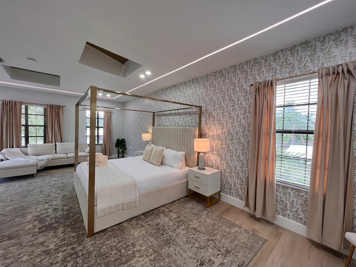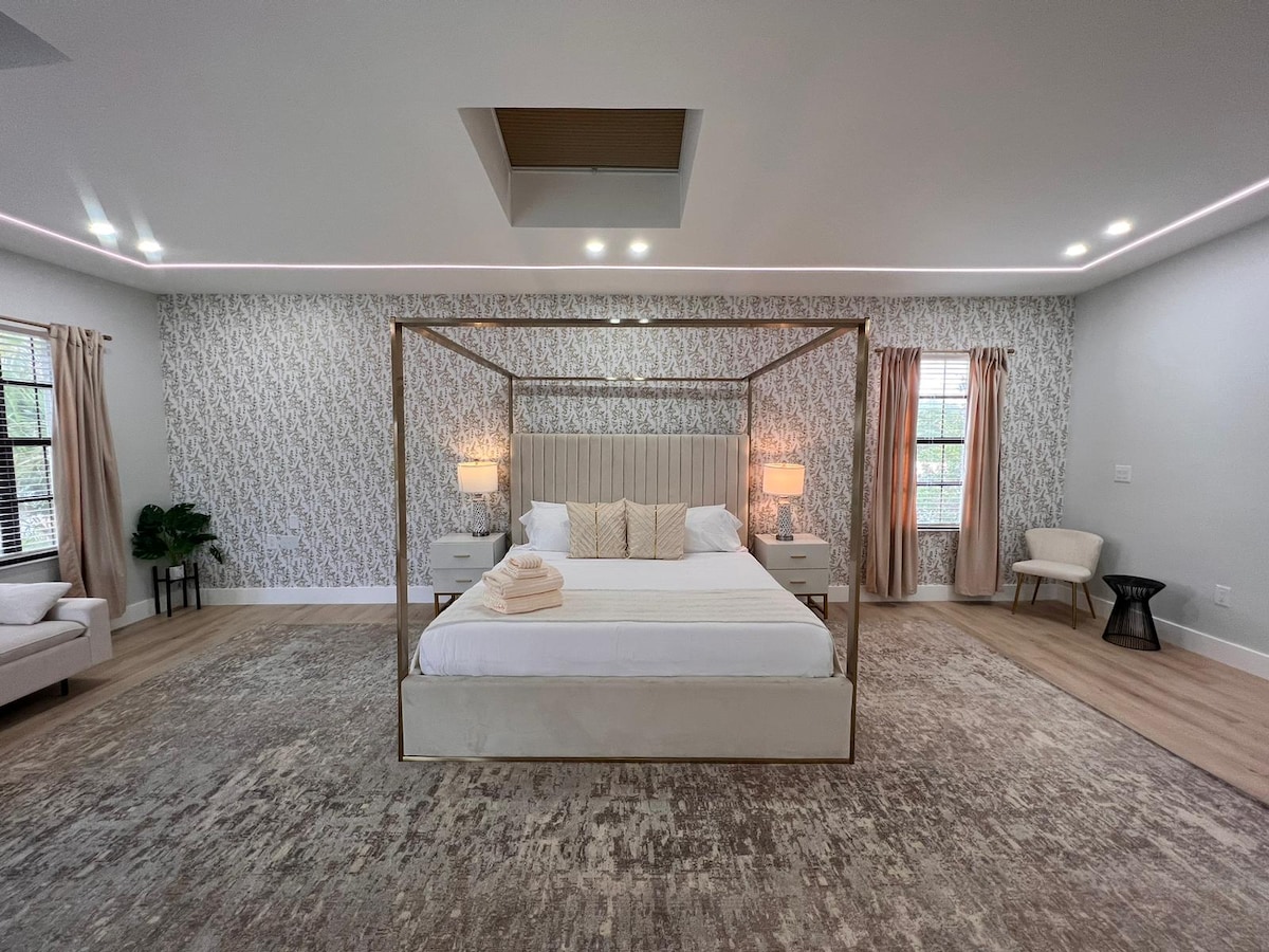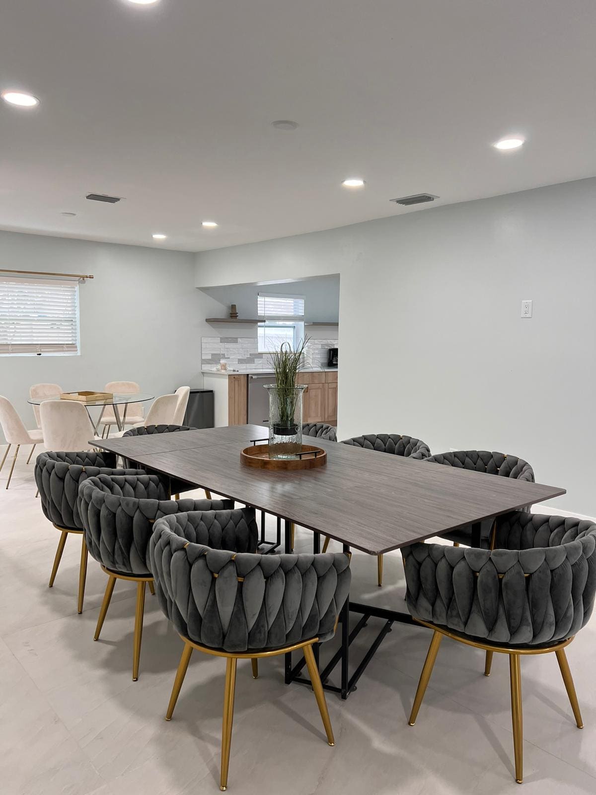 The home boasts a brand-new, fully equipped kitchen with high-end appliances, making it easy to prepare meals for your group. Every element of this home has been newly renovated, offering a fresh, luxurious experience.