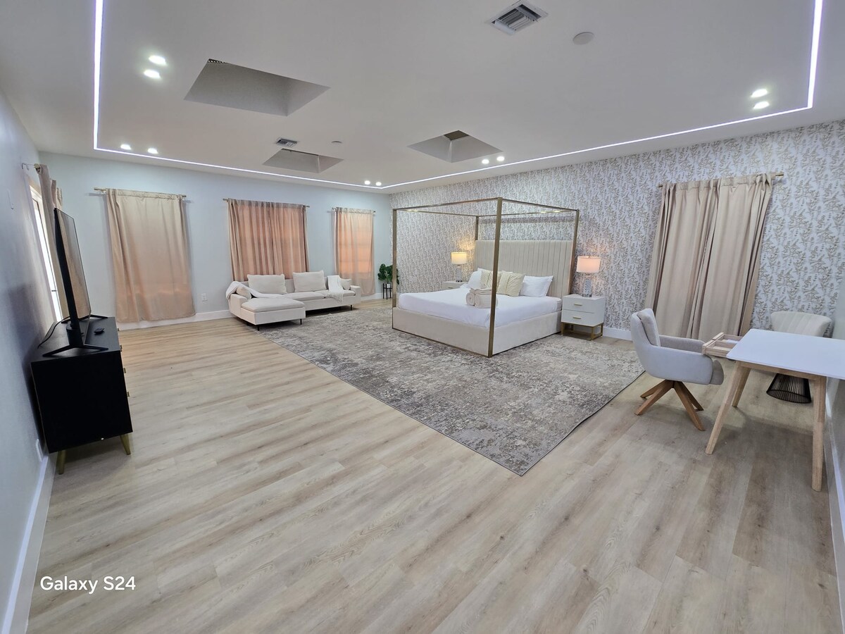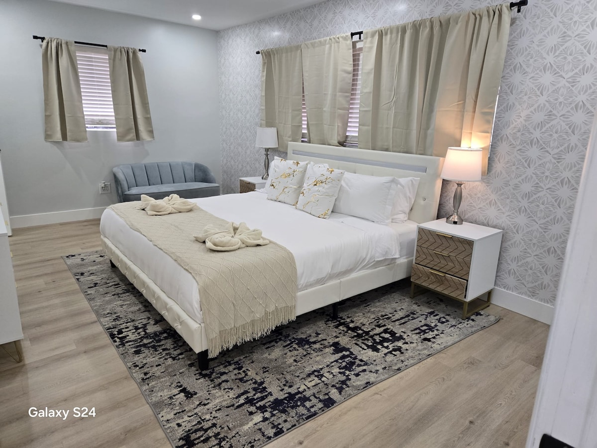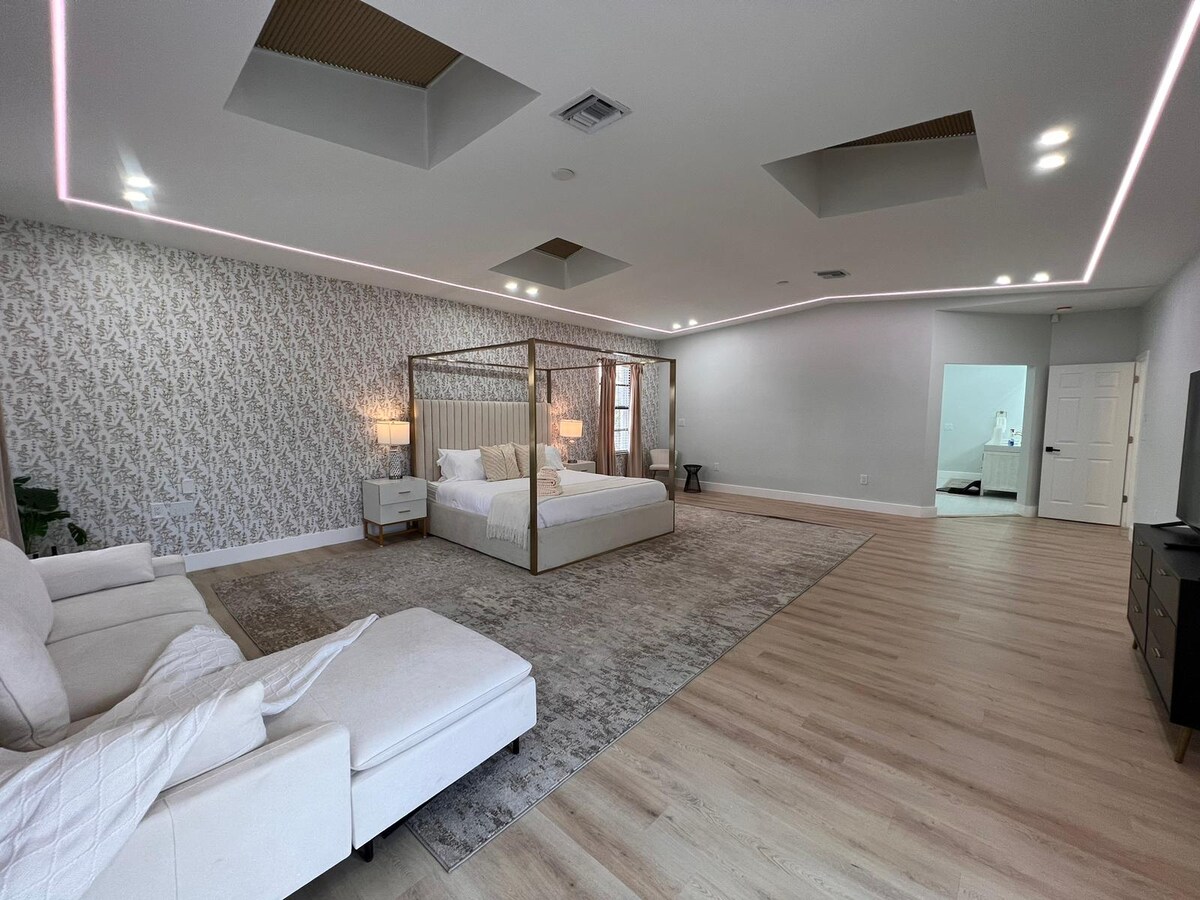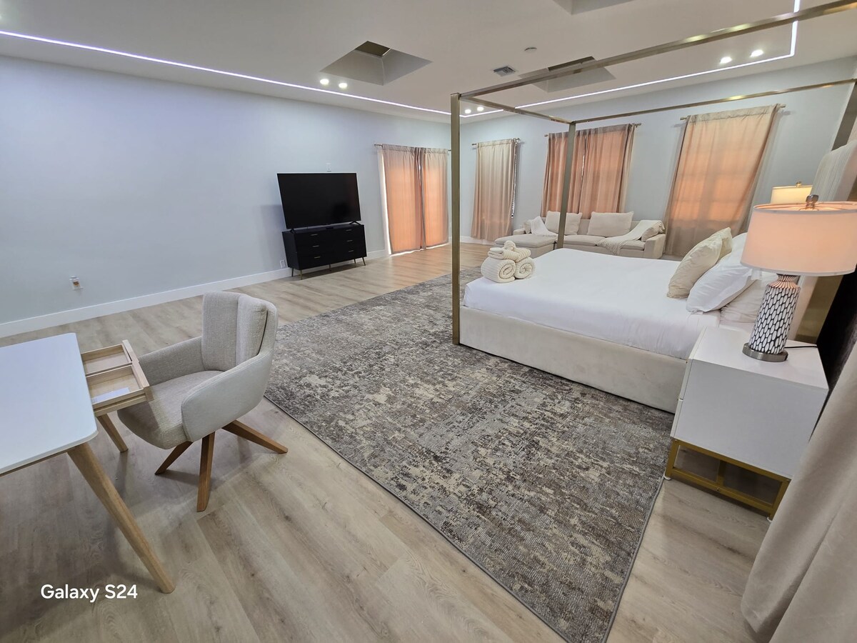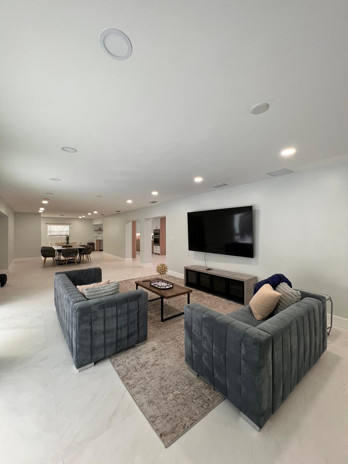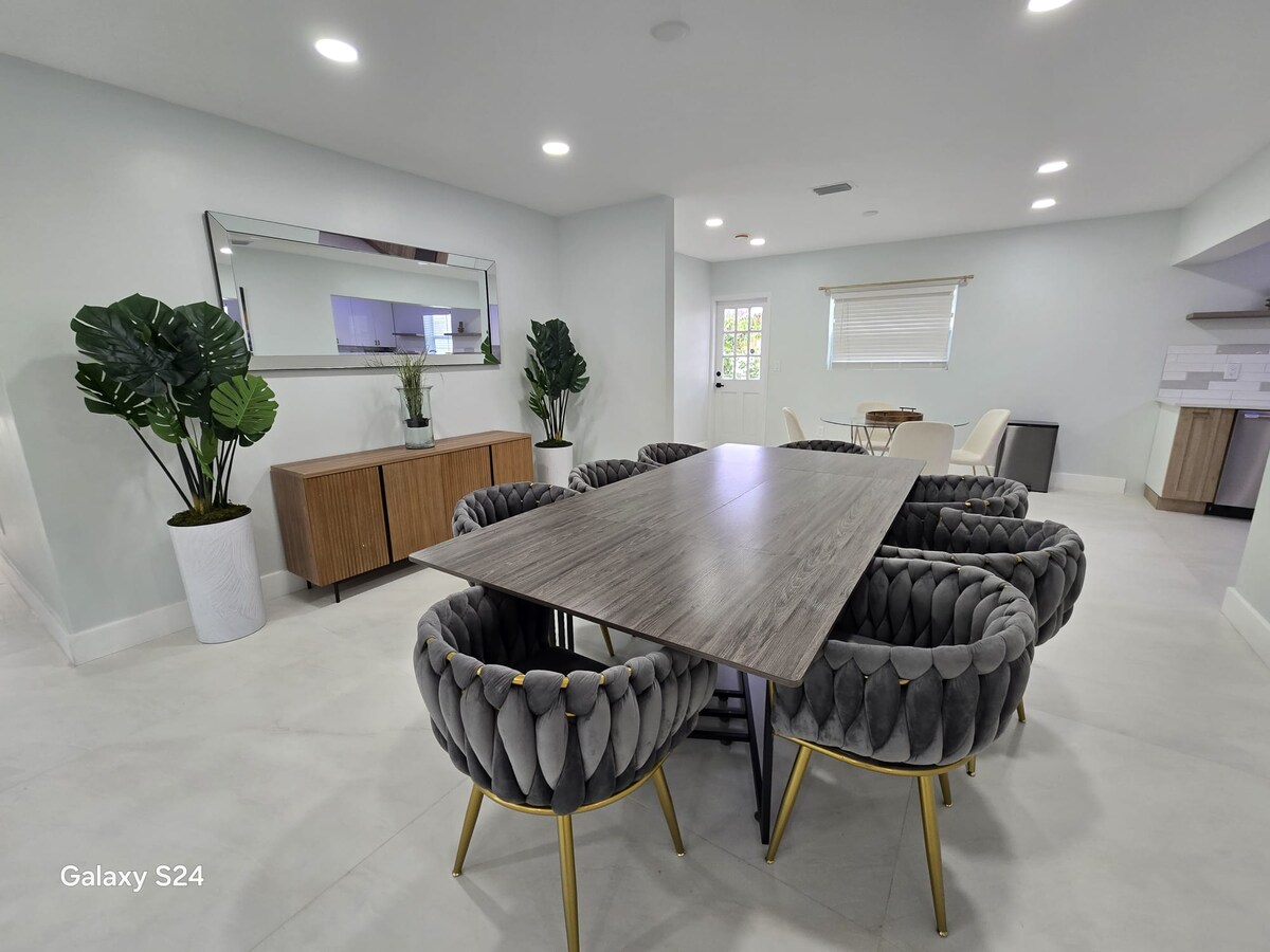 The home boasts a brand-new, fully equipped kitchen with high-end appliances, making it easy to prepare meals for your group. Every element of this home has been newly renovated, offering a fresh, luxurious experience.