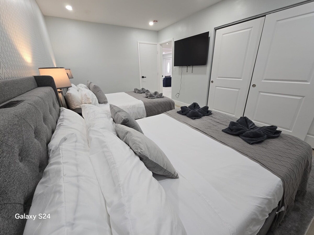 Bedroom 3: Two queen beds with a private en-suite bathroom.