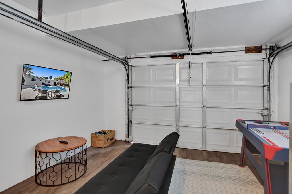 The converted garage offers a cool escape with plenty of entertainment for all ages.