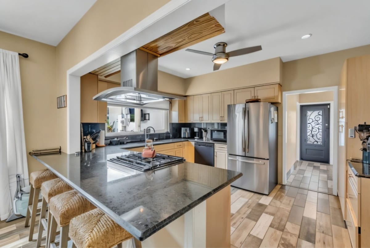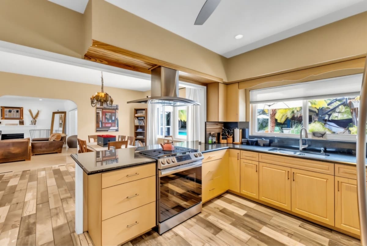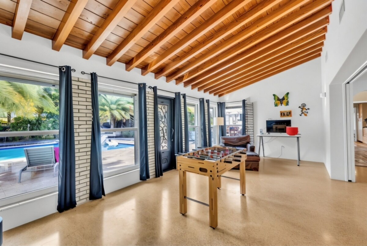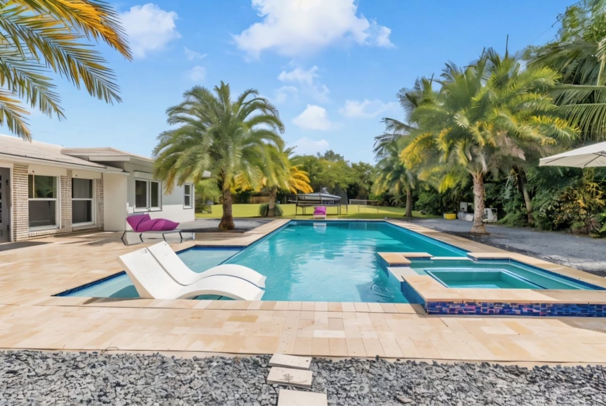 Inside, you’ll find a fully stocked kitchen with everything you need, along with spacious living areas. The location is just 2 miles from Pompano Beach Park.