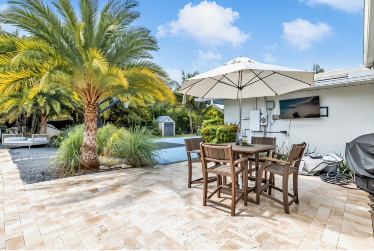 ✔ Outdoor Dining Area (under tiki umbrella)
