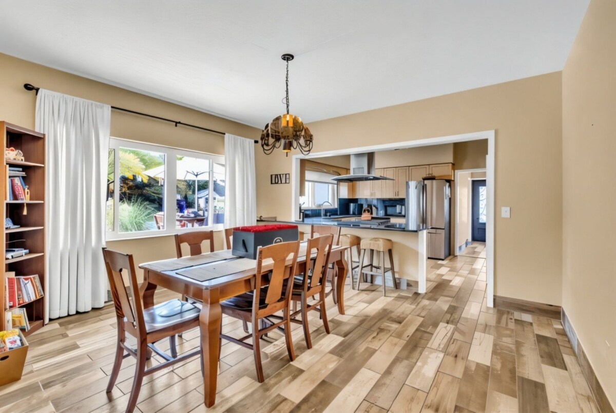 Have a few drinks on the kitchen island while the food is getting ready. Once it's done, serve it on the inviting dining table and enjoy gourmet meals with your friends and family.