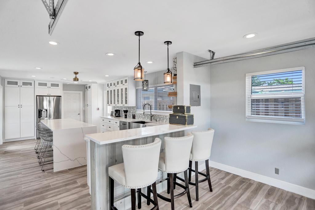 Escape the heat by coming to the remodeled garage, where you will discover numerous entertaining amenities. Be careful, though, as you will quickly lose track of time in this oasis of fun.